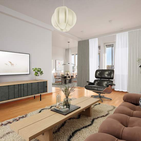 Ljus och rymlig 2:a med öppen planlösning. Härlig utsikt ifrån våning 5! Stor inglasad balkong i söderläge! Seniorlägenhet Hiss Inglasad balkong Tillgång till gästlägenhet Tillgång till samlingssal