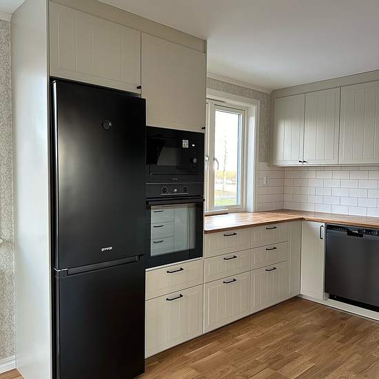 Lägenhet, renoverad under 2023. Lägenheten är på 60 kvm fördelat på 2 rum och kök. Entrén går via en oisolerad glasveranda in till en mindre hall med förvaring och vidare till vardagsrum och ett rymligt, ljust kök med helt nya köksskåp och vitvaror. En trappa upp finns sovrum med bra förvaringsmöjligheter och ett helkaklat badrum med dusch, toalett, handfat och en kombinerad tvättmaskin/torktumlare. Parkettgolv i alla rum. Stort källarförråd. Mindre tomt i tre väderstreck med parkering utanför huset och möjlighet att ladda elbil. Värme, vat...
