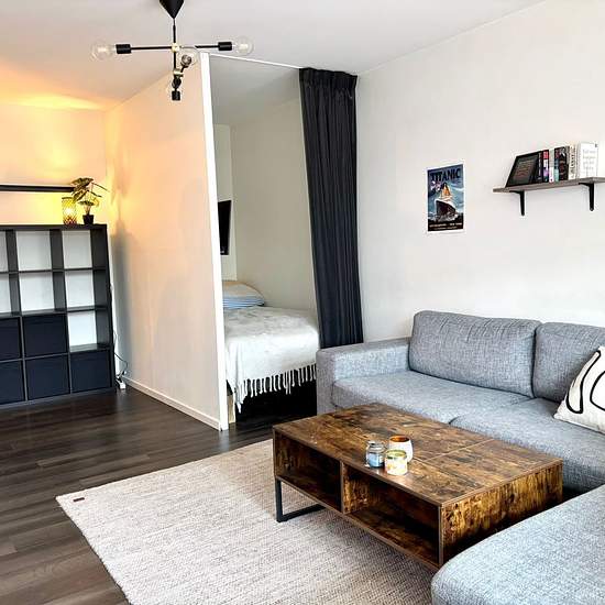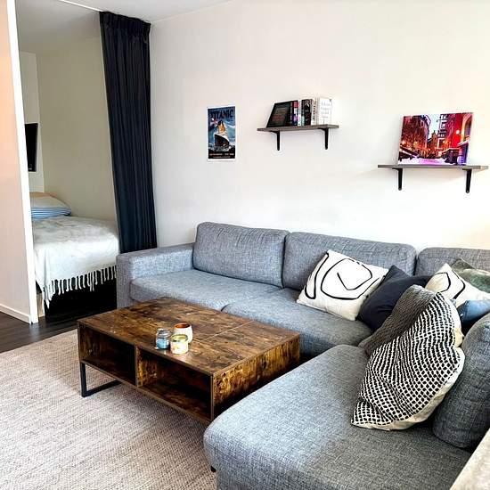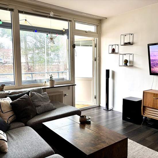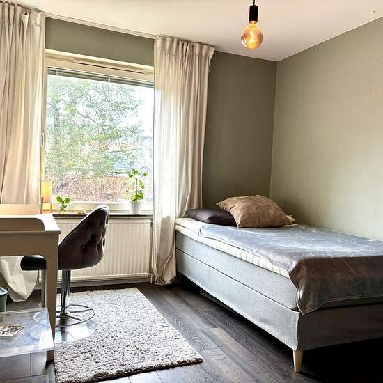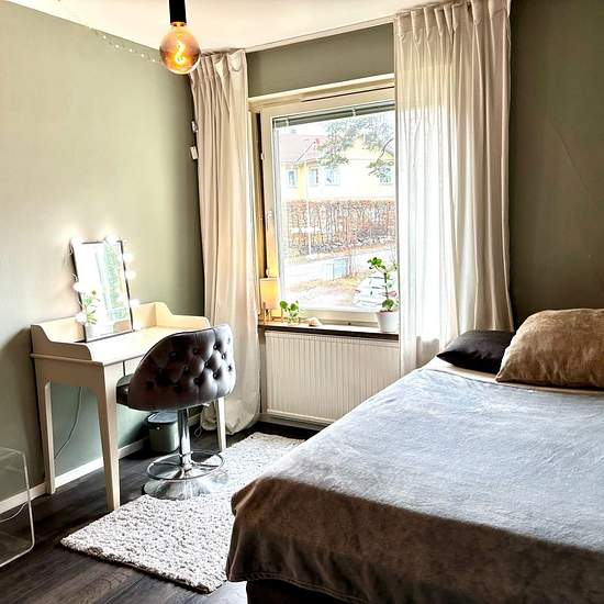 En 2,5-rummare – kök, ett stort sovrum och vardagsrum med inbyggd sovalkov. Inglasad balkong med kvällssol. Fin och fräsch lägenhet, genomgående mörka golv, lättstädat. Tv och bredband ingår i hyran. Uthyres möblerat. Köket är i princip fullt utrustat. Strykjärn, tvättmaskin, hårfön, TV, handdukar och lakan etc finns. 2 månaders deposition. Lägenheten hyrs ut så snabbt vi hittat en lämplig hyresgäst som blir godkänd av föreningen. Uthyres 1 år utan möjlighet till förlängning. 1 månads uppsägning åt båda håll. 200 meter till närmaste ...