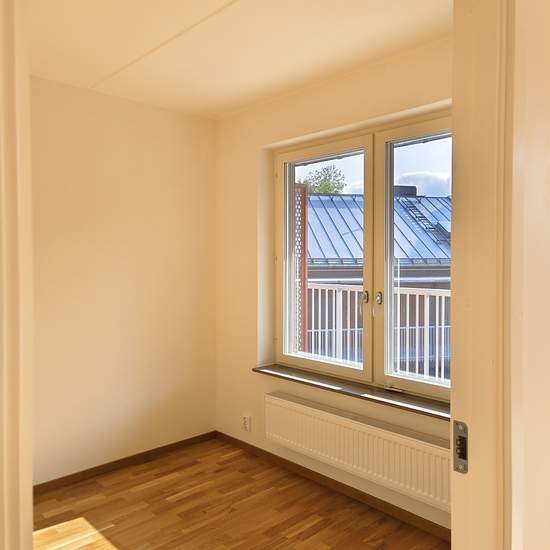 Smart planerade kvadratmeter. Sovrummet i anslutning med hallen där det finns gott om förvaring i garderober. Kök och vardagsrum i öppen planlösning. Förråd om 1 kvm i passagen från hall till köket. Ingång från loftgång.