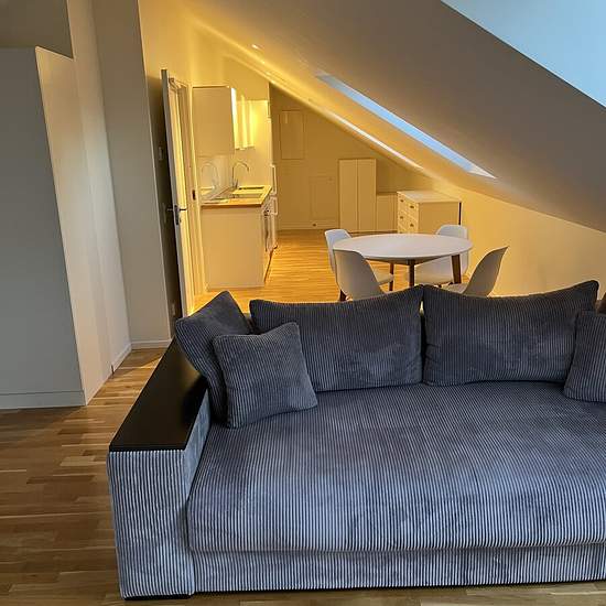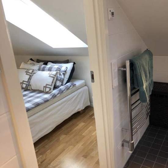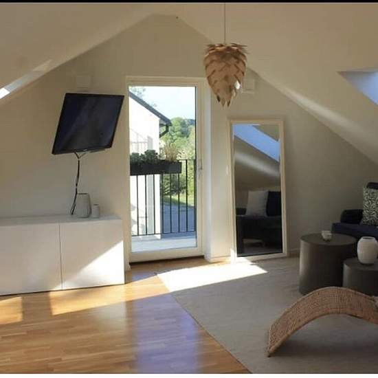 Välkommen till en ljus fin och modern vindslägenhet i trygga lugna slottsområdet Venngarn i Sigtuna! Här har du en liten balkong för 2 i eftermiddags/kvälls-sol, mysigt sovrum med snedtak, spotlights i kök och badrum. Delvis möblerad med köksbord och stolar, stor ny bäddbar Sweef-soffa samt förvaringsmöbler i form av ett antal stilrena vita byråer. Du bor på våning 3/3 med utsikt över natur och hästhagar. Öppen planlösning vardagsrum och kök. Sovrummet separat med dörr . I området har du stora naturområden precis utanför dörren, minigolfb...
