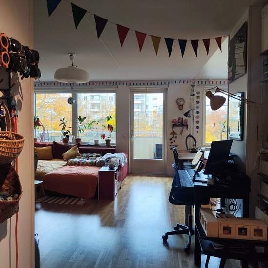 Fullt möblerad och ljus lägenhet med öppen planlösning mot väster och nära Sätra tunnelbanestation (20 minuter till T-centralen). Vi har bott här i över 11 år och vi reser i cirka sex månader, vilket är anledningen till att vi hyr ut lägenheten. Vi har saker som TV (55"), 2.1 soundbar-högtalarsystem, ett par datorskärmar (21-27"), Xbox One, matberedare, diskmaskin, köksutrustning etc. Utöver de saker som nämns i annonsen har balkongen egna möbler, som för närvarande är hopfällbara och förvarade där. Vi har en utfällbar soffa. Vi har många...