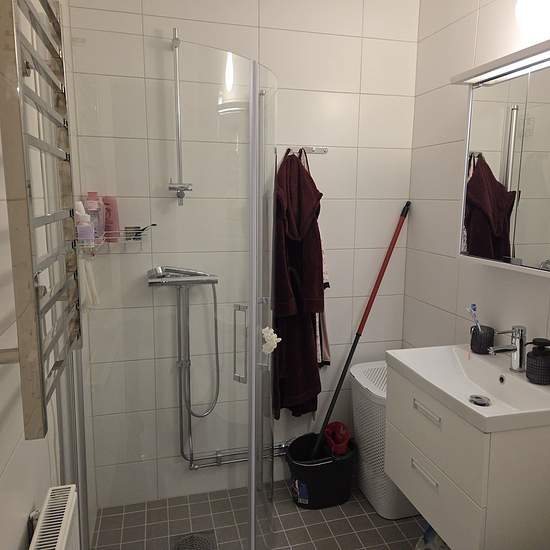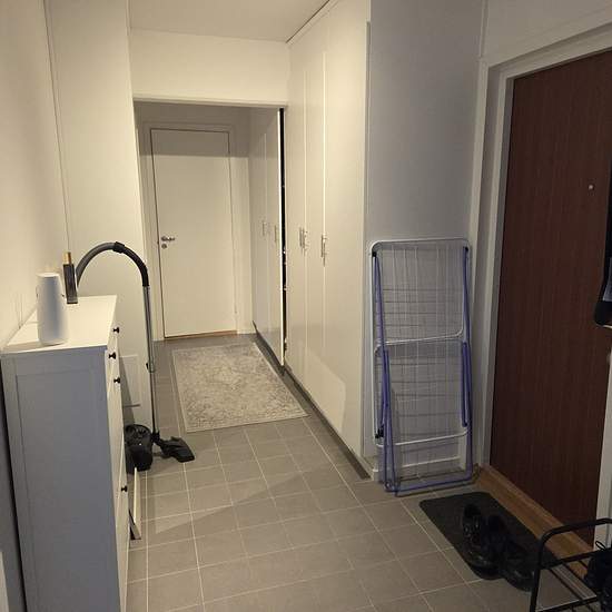 Bostad OBS! INGEN VISNING. Du behöver ta ställning till om du är intresserad baserat på bilder och planritningen i annonsen. Hyran på lägenheten avser 2025-års hyresnivå. Möjlighet att flytta in tidigare finns. Lägenheten helrenoverades 2024 och hyrs nu ut i befintligt skick. Hall: vitmålade väggar, ljsugrått klinker, garderober. Badrum: Helkaklat, dusch, handukstork, tvättmaskin finns ej i lägenheten. Kök: Vit köksinredning, svart bänkskiva, köksfläkt, keramikhäll/varmluftsugn, kombinerad kyl/frys, ljusgrått klinker golv. Vardags...