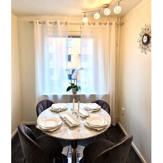 Ljus och mycket fräsch 2-rums lägenhet med en bra planlösning . Perfekt för den lilla familjen. Välutrustad kök med gott om plats för ett matbord för 4 personer. Vardagsrum i sydväst och nära Hovsjö centrum med stort utbud av butiker och service. Nära bussar till Södertälje central. Serviceavgift för hyresgäst: 446