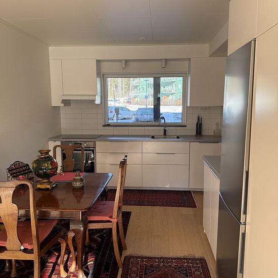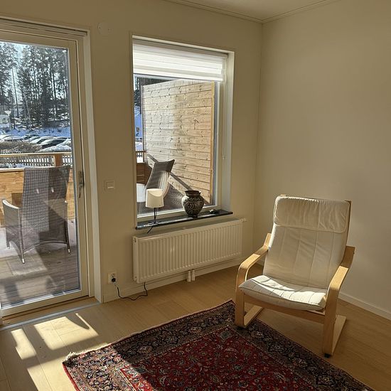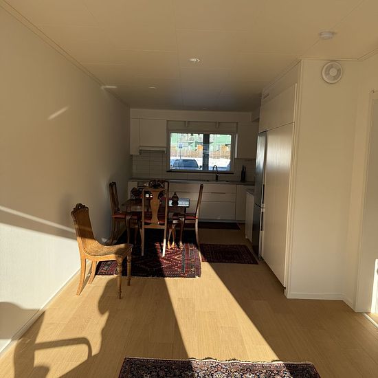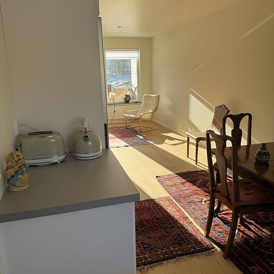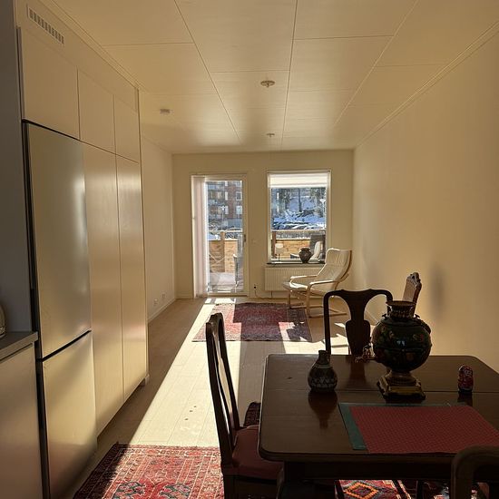 Tvåa med solig söderaltan Välkommen hem till denna klokt planerade tvåa. Med ett förråd i direkt anslutning till hallen finns det gott om plats till förvaring. Det stora badrummet har bekvämligheter som handdukstork, tvättmaskin och det är förberett för torktumlare. Köket har rostfria vitvaror och är utrustat med diskmaskin. Här finns det plats för middag med vänner och den öppna planlösningen mot vardagsrummet ger både rymd och ljus. Från vardagsrummet når du också den stora altanen i söderläge. I sovrummet finns det plats för både dubbels...