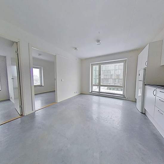 Tvårumslägenhet med allrum. Denna tvåa är optimalt planerad för dig som vill dela lägenheten med en sambo eller studiekamrat men samtidigt få utrymme för studiero. Har finns två sovrum där man får plats med sovdel och arbetshörna eller om man väljer att inreda ena rummet till sovrum och det andra till vardags eller arbetsrum. Allrum med kök. Köket är utrustat med kombinerad kyl och frys, spishäll, köksfläkt och micro. Stort fönster som ger ett fint ljusinsläpp. Skena på väggen för upphängning av elfasystem eller tavlor. Vitmålade väggar ...