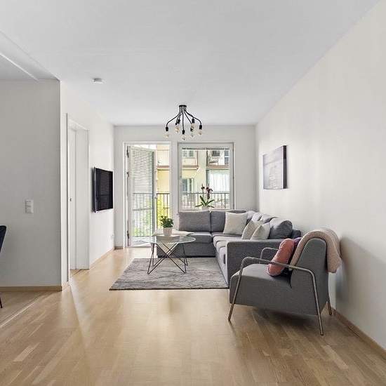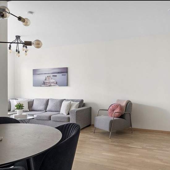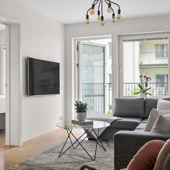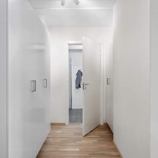 Lägenheten är en stilren och välplanerad tvåa som hyrs ut i gott skick. Den har en ljus och luftig känsla med ljusa ytskikt och ekparkett i hela bostaden. I hallen finns bra förvaring med garderober, hatthylla och skoförvaring. Till vänster ligger ett helkaklat badrum med golvvärme och en kombimaskin för både tvätt och tork. Köket är modernt och praktiskt med induktionshäll, integrerad kyl och frys, diskmaskin och mikro. Lägenheten hyrs ut delvis möblerad, i vardagsrummet finns en tv och i hallen finns en skohylla, hatthylla och även en speg...
