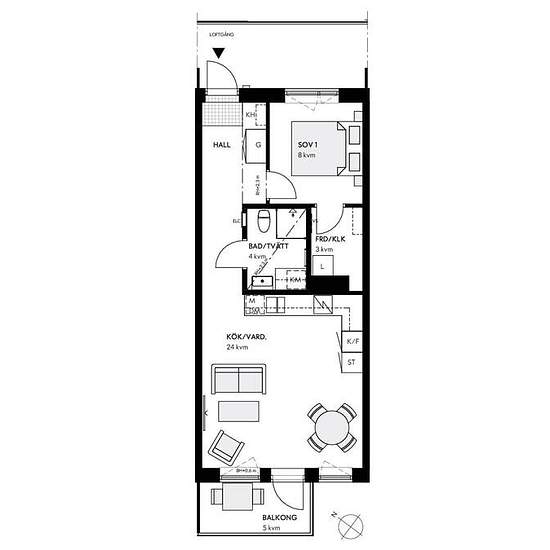 Här får du en välplanerad tvåa med både balkong i sydvästläge och en egen plats på loftgången med skärmväggar mellan lägenheterna. Planlösningen mellan kök och vardagsrum är öppen och ger dig gott om plats för både matbord och tv-hörna. Vinkelköket från IKEA har vita släta köksluckor med vitt stående kakel och betongmönstrad bänkskiva. Här finns allt du behöver för en praktisk vardag – såsom kombinerad kyl/frys, integrerad diskmaskin, rostfri varmluftsugn, induktionshäll och det är förberett för mikrovågsugn. I det helkaklade badrummet...