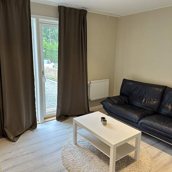 Attefallshus möblerad. En jättefin nybyggd attefallshus. Uthyres till endast en person. Nära till buss och pendeltåg och närbutik. Stora Coop och Lidl gångavstånd. Internet ingår, el tillkommer. En månads deposition. Serviceavgift för hyresgäst: 565