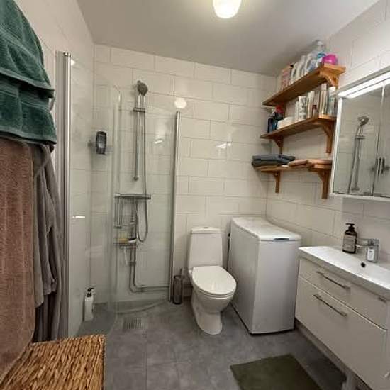 I have an unfurnished apartment available for rent. • Size: 56 sqm (1 bedroom, 1 living room, and a kitchen) • Location: Vällingby – only a 5-minute walk from Vällingby Station • Rent: 12,000 kr per month (includes electricity, water, and internet) Included amenities: • Microwave • Washing machine • Dishwasher • Fridge and freezer • Air conditioner Additional features: • Access to shared laundry room • Garden area • Parking available for 500 kr/month Move-in date: January 2026 Please see the apartment photos below....