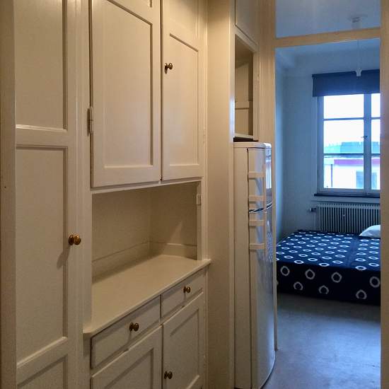 Ljus och öppen lägenhet högt upp i huset utan insyn. Genomgående planlösning med bra möbleringsmöjligheter. Stort vardagsrum, stor möblerbar hall som kan användas som arbetsplats, arbetskök med gasspis och sovrum med plats för dubbelsäng. Svarvargatan är centralt belägen på Kunghsholmen i ett lugnt och fint område nära Västermalmsgallerian med närhet till både buss och tunnelbana. Välskött fastighet med hiss, tvättstuga och innergård med grillplats. Alldeles utanför dörren kan du promenera eller jogga längs kungsholms strand med tillgång...