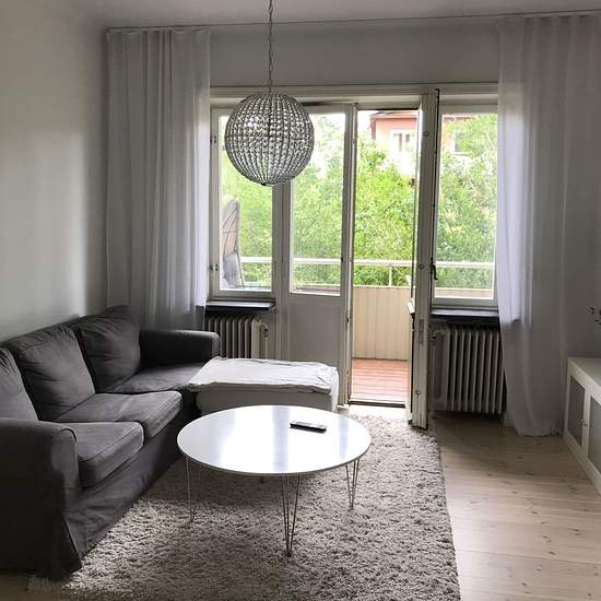 Möjligt att hyra depositionsfritt genom Samtrygg. Månadskostnad: 19550 kr. ________________________________________________________________ Snabbast bokar du visning genom att följa denna länk till Samtrygg: Här hittar du även fler bilder och mer info. ________________________________________________________________ Intressekoll för uthyrning eller inneboende Optimalt planerad 2:a på 39 kvm med stor balkong om ca 10 kvm i mycket insynsskyddat läge, med grönska precis utanför fönstren. Balkongen löper längs hela lägenhetens sida och...