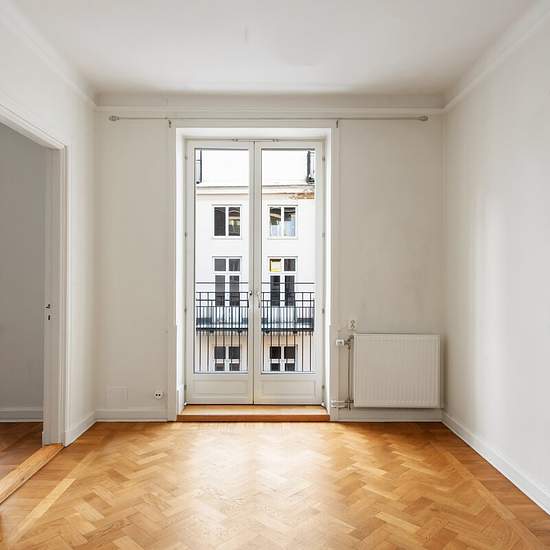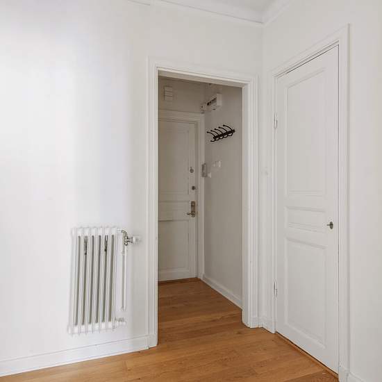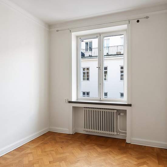 På attraktiva Karlavägen på Östermalm finns denna charmiga och välplanerade tvåa om 43 kvm, belägen på våning fyra i ett klassiskt fastighetshus med vacker innergårdsmiljö. Lägenheten hyrs ut omöblerad och erbjuder ett lugnt och ljust boende med tidstypiska detaljer och moderna inslag. När man kliver in möts man av en rymlig hall med avhängning och gott om förvaringsmöjligheter. Härifrån nås lägenhetens olika rum, vilket skapar en naturlig och genomtänkt bostadsplanering. Vardagsrummet är luftigt med stilren fiskbensparkett, stora fönster o...
