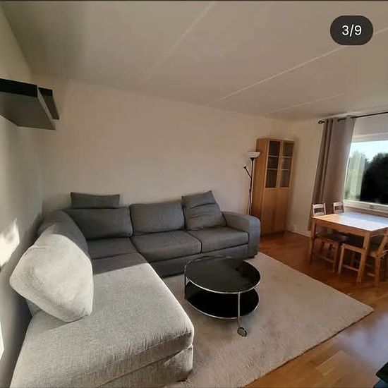 Hej, Jag hyr ut en lägenhet i Brandbergen/Haninge/Stockholm på 46kvm, våning 2 av 7 med hiss, 2 rum + kök utan balkong f.rom26 minst 1 år framåt. Finns en busshållplats ca 50 meter utanför porten som med direkt buss tar dig till Gullmarsplan på ca 20 min för fm. Den andra bussen mot Gullmarsplan tar ca 40 min. Även buss till Haninge C där pendel finns tar ca 5 min. Hyrs ut möblerad med källarutrymme (vid överenskommelse om viss omöblerad finns inte tillgång till källarutrymme - Kan ta bort allt förutom soffan). Tillgång till tvättstuga ...