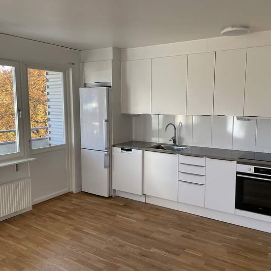 Välkommen till denna ljusa och välplanerade tvåa med balkong på Axvägen. Lägenheten erbjuder ett nyrenoverat kök med stilrena materialval, gott om förvaring och diskmaskin. Badrummet är helkaklat, och hela bostaden har genomgående ekparkettgolv samt vitmålade väggar som ger en ljus känsla. Hiss finns i huset för smidig tillgång till alla våningsplan, och en gemensam tvättstuga är belägen på entréplanet Läget är utmärkt med närhet till mataffärer, skolor och grönområden. Området har goda bussförbindelser som tar dig smidigt in till city. E...