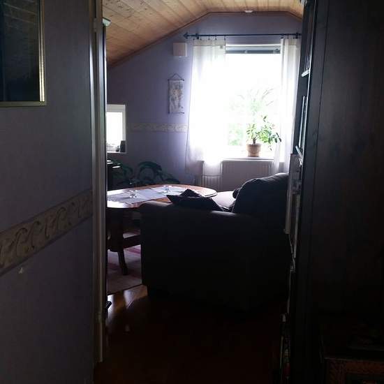 Vår lägenhet på övervåningen i vårt hus är ledig för uthyrning. Det är en 2:a på c:a 40 kvm, lagom för 1 person. Stor klädkammare, badrum med dusch, tvättmaskin, carport m.m. Tyst och lantlig miljö omgivet av ett öppet landskap. På gården finns hästar, ankor och katter. Vi tar inte emot hundar eller barn. 20 min promenad till Svenshögens station där det går tåg. 15 min promenad till buss 334 Se Västtrafik Serviceavgift för hyresgäst: 297