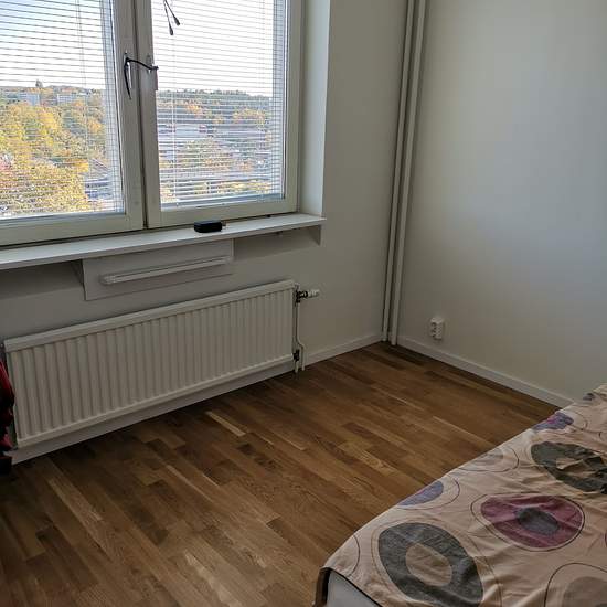2 room och kök, nyrenoverad, nytt badrum, nytt kök och nya golv, väldigt ljus och välplanerad lägenhet bestående av vardagsrum sovrum och kök, kyl&frys och spis, 7 st garderober,stor balkong, fint utsikt, tvättstugan i samma hus, väldigt nära pendeltåg och busshållplatser, hyra 9700 kr, söker bara en person! Serviceavgift för hyresgäst: 577