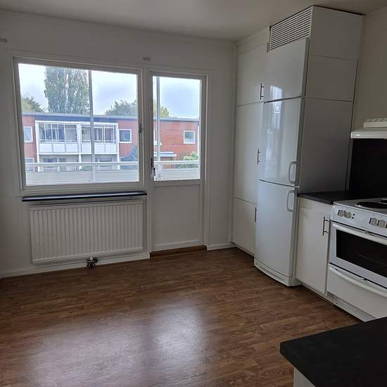 Bostad Tvårummare med inglasad balkong. Lägenheten har vitmålade väggar. I sovrum och vardagsrum ligger parkettgolv och i hall och kök finns golvmatta. Det kommer sättas in en ny spis med glashäll och varmluftsugn. Badrummet renoverades 2022 och är helkaklat med vitt kakel på väggarna och grå klinker på golvet. Här finns dusch, handdukstork samt tvättmaskin och torktumlare. Säkerhetsdörr finns och sattes in 2022. Det är inte tillåtet att röka i lägenheten och på balkongen. Bilderna är från den aktuella lägenheten. Observera att du so...