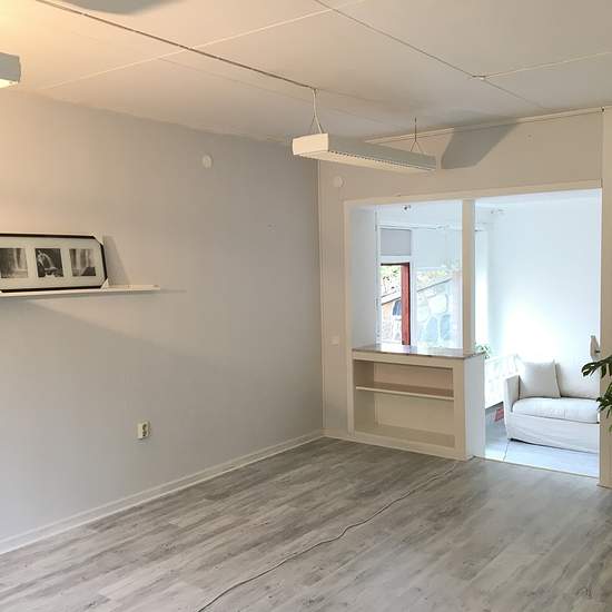 Affärslokal uthyres. Centrala Trollhättan. Ljus lokal i vacker omgivning, nära resecentrum och högskolan. Lämplig till ett flertal olika verksamheter. 42 kvm, i två sammanhängande rum. Entréplan har stort skyltfönster med plats för skyltning. Golvvärme. Toalett. Avskilt pentry med diskbänk, skåp. Förberett för disk alt. tvättmaskin. Andra rummet har tre fönster, täckande takbelysning, flertalet eluttag. Möjlighet till varm/kallvatten och avlopp finns. Lokalens ingång har sidlampor och upplyst väggskylt över entrén finns att tillgå. L...