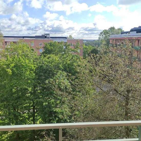 Ljus och fin lägenhet 2 rok i Tyresö. Renoverad och fräsch. Våning 4 av fem med hiss. Ingen insyn. Fullt möblerad med vardagsrum, skrivbord, kök & säng (120). Pakettgolv i alla rum inkl kök. 2 walk-in closets med rails. Fullutrustat kök med ugn, diskmaskin, micro, frys etc. Finns tvättmaskin & torktumlare + 30 meter till stor tvättstuga. 150 meter till parkering. OSB: Detta är lägenhet för 1 person - EJ familj med barn. Uthyres 2026 Feb - Oktober, ev fölängning pga resa i tjänsten. Serviceavgift för hyresgäst: 672
