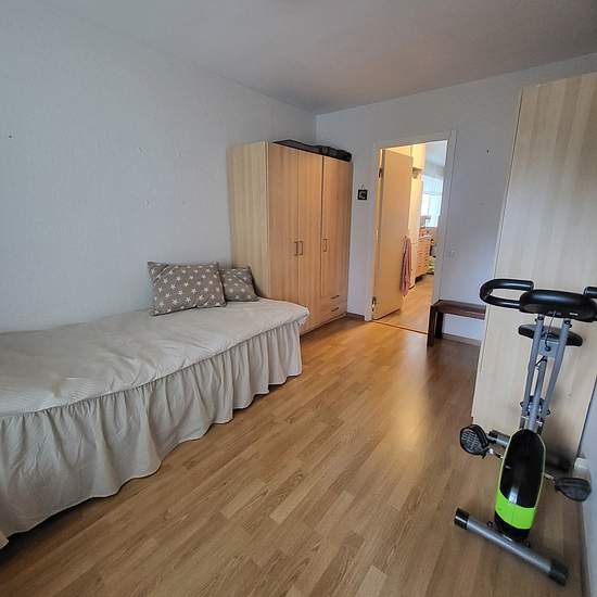 En tvårumslägenhet i bottenplan med egen insynsskyddad uteplats. I dagsläget möblerat för en person, men man får absolut ändra på det om man vill. Sovrummet och vardagsrummet kan båda användas som sovrum, det finns dörrar så det går att stänga till, ifall två personer vill ha vart sitt rum och dela badrum och kök. Man kommer direkt in i hallen som går i en korridor framåt med flera garderober, dörr till köket, badrummet och vardagsrummet. Från vardagsrummet kommer man till sovrummet och sedan till köket. Man kan alltså går runt i lägenheten....