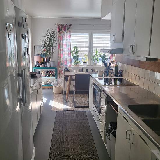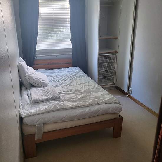 Lägenheten är i ett område nära universitetet och sjukhuset. Här finns mataffärer, en pub dit många studenter går, stort idrottcenter, och nära till kollektivtrafik. Du hyr två mindre rum i min fyra. Ett sovrum och ett studierum. Tv finns i sovrummet samt att internet och el ingår i hyran. Vi delar hall, badrum och kök. Jag studerar och hyr ut en del av bostaden under min studietid. Bra att veta: badrum och delvis kök kommer att renoveras under våren med start runt mars. Toalett och dusch kommer under cirka 2 månader finnas utanför lägen...