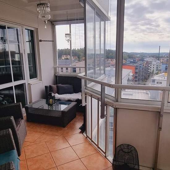 Ljus och mycket trivsam bostad belägen på åttonde våningen i en välskött fastighet. Lägenheten har ett fint ljusinsläpp och en stor balkong som sträcker sig runt bostaden, vilket skapar en öppen och behaglig känsla. Bostaden är mycket väl omhändertagen, ren och ger ett lugnt och harmoniskt intryck. Det här är ett hem som passar perfekt för någon som uppskattar ordning, omtanke och en rofylld boendemiljö. Läget är centralt och mycket bekvämt, med pendeltåg och buss endast cirka en minuts promenad bort. Med bil når du Arlanda på cirka 15–20 ...