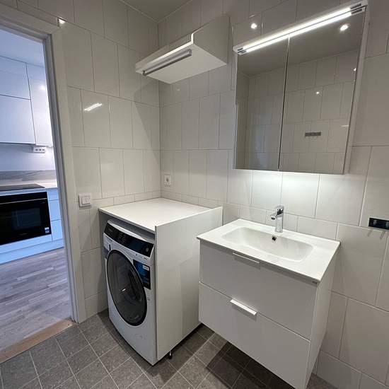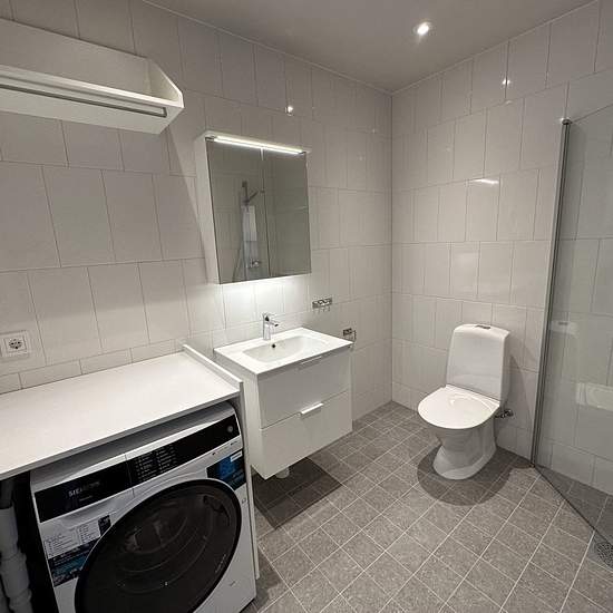 A new modern flat, walking distance to central Uppsala. Available from August 11. 1 living room + 1 bedroom + 1 bathroom. A big balcony facing a yard. Modern fully equipped kitchen (big fridge, dishwasher, microwave, oven, exhaust hood). Brand-new amenities and smart electronics, such as oven, washing machine and microwave with digital smart touch panel. Spacious livning room. Elevator available. Can be rented out either furnished or unfurnished. Gym is 2 min walk away, bus stop is 5 min walk away. Serviceavgift för hyresgäst: 628