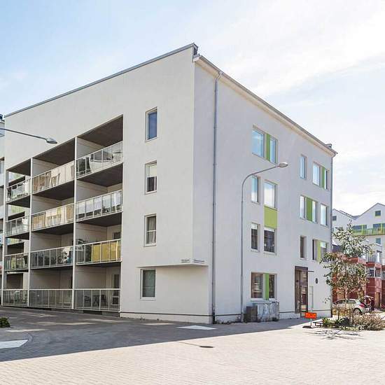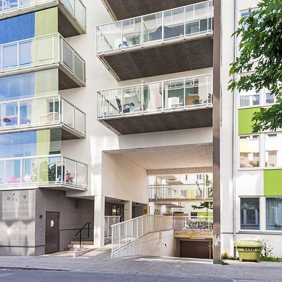 Bostad Lägenheterna har genomgående målade väggar och ekparkett, förutom i hall och badrum där det finns ett mörkt klinkergolv. Kök med vit skåpinredning från Ballingslöv, samt kakel över bänkskiva i laminat. Köken är utrustade med vit spis med glaskeramikhäll (Cylinda) och varmluftsugn samt köksfläkt. Till varje lägenhet hör ett källarförråd. Cykelparkering i cykelrum med servicebänk. Miljörum finns på Johannesbäcksgatan 71. Det finns en gemensam gård som delas med grannfastigheten med grönytor, kuperad naturtomt samt med lek-/ och grillpl...