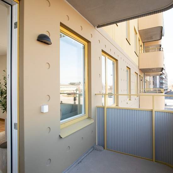 Bostad Lägenheten har en ljus och öppen planlösning med vita väggar och genomgående parkettgolv. Köken har vit skåpinredning från Vedum, grå bänkskiva i laminat. Till det är köket utrustat med spis, ugn, kyl, frys samt diskmaskin. Badrummet har vita väggar och grått klinker på golvet. Badrummet är också förberett för tvättmaskin. Två gemensamma tvättstugor finns att nyttja med fina tvätt- och torkmöjligheter. Gallerförråd finns i byggnaden. Från vardagsrummet har du utgång till den egna balkongen. Bilderna är exempelbilder och inte fr...