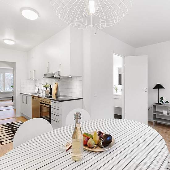 Bostad Detta är en lägenhet som renoverades 2016 och är belägen i en äldre fastighet. Alla rum har parkettgolv och ljust målade väggar. Det är vita släta köksluckor i köket samt mörk bänkskiva i avtorkbart material. Utrustningen består av kombinerad kyl och frys , spis. Alla vitvaror är i vitt utförande. Lägenheten har ett badrum som är helkaklat i vitt med grått klinkergolv. Det är utrustat med dusch, handdukstork samt golvvärme (el) för komfortens skull. Bostaden har även säkerhetsdörr som ger trygghetskänsla och står emot ljud ifrå...