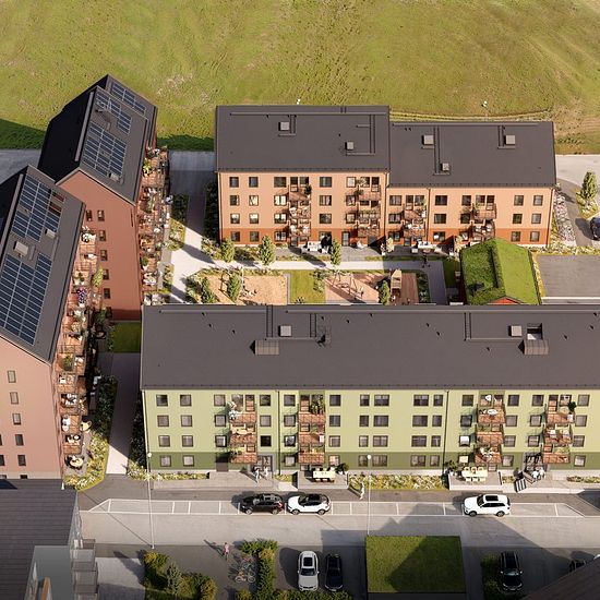Bostad Alla lägenheter har parkettgolv i samtliga rum och grå klinker i hallen, både stilrent och praktiskt oavsett årstid. Köken är utrustade med induktionshäll, ugn, diskmaskin samt kyl och frys i full- eller halvhöjd beroende på lägenhetsstorlek. Inredningen består av vita köksluckor med rostfria handtag, grå laminatbänkskiva och vitt matt kakel som stänkskydd. Badrummen är helkaklade och har duschhörna med glasvägg. Här finns även tvättmaskin och torktumlare, eller kombimaskin i de mindre lägenheterna, så att du enkelt kan sköta tvätte...