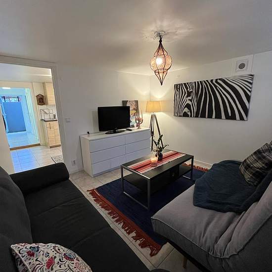 Hej! Vi letar efter en hyresgäst/ett par. Lägenheten är en enskild del av villan, med egen ingång. Det finns 2 rum och kök samt en nyrenoverad badrum. Allt är byggt/ renoverats senaste 5 åren. Det finns uteplats som tillhör lägenheten. Lägenheten är fullt möblerad, och allt ingår i hyran (inklusive el). Det tar 5 minuter till Vällingby Centrum eller Spånga station, med buss. Busshaltplats är 2 minuters promenad bort. Vi har en hund och en katt, så vi önskar hyresgäster som är vana med husdjur. English: We are putting out our apartment to...