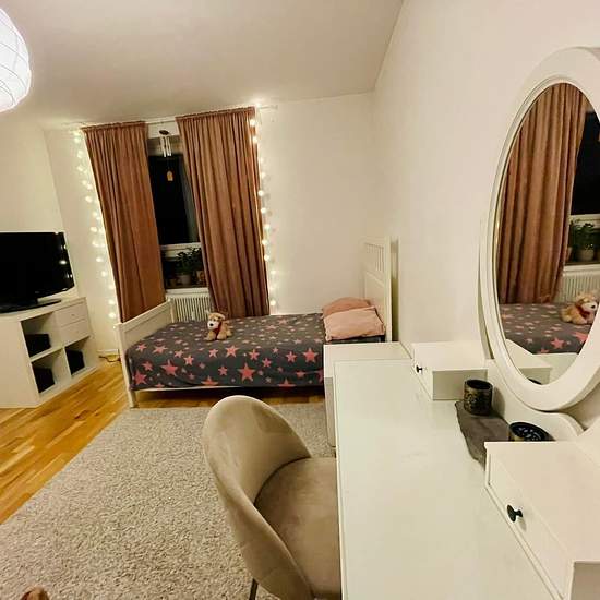 Välkommen till ditt nya hem! Ett stort rum i en två:a i Vällingby Centrum. Bara för en kvinnlig hyresgäst Lägenheten är utrustad med allt man kan behöva för ett bekvämt boende, inklusive tvättmaskin i lägenheten. I det andra rummet bor jag själv, varannan vecka är jag inte hemma. Rummet är redo för en ny hyresgäst redan nu. Jag välkomnar dig till en visning av ditt potentiellt nya hem! Serviceavgift för hyresgäst: 297