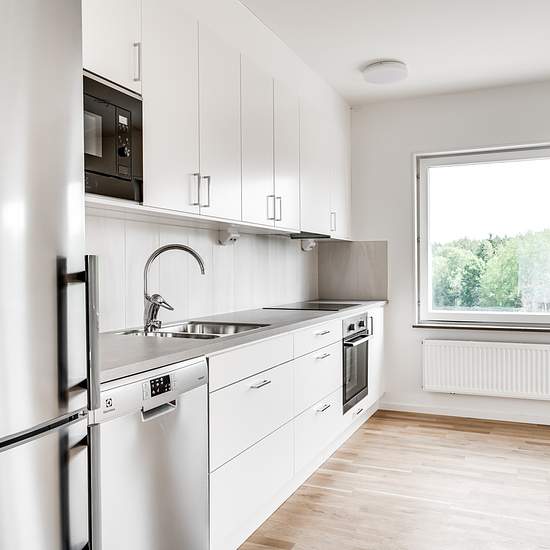 Just nu Hyresrabatt i 1 år! Spara upp till 2.000:- per månad! Månad 1-4: 2.000:- rabatt/månad Månad 5-8: 1.000:- rabatt/månad Månad 9-12: 500:- rabatt/månad Gäller vid nytecknande av kontrakt. Bra planerad tvårummare med balkong om ca 7 kvm åt soliga söder. Fönsterbänkar i natursten, vitmålade väggar och ekgolv. Vitt kök från Vedum och rostfria vitvaror från Electrolux; diskmaskin, kombinerad kyl/frys, induktionshäll, varmluftsugn och mikrovågsugn. I köket är det dämpade fullutdragslådor och under väggskåpen finns en ledlist för bra arbetsl...
