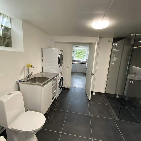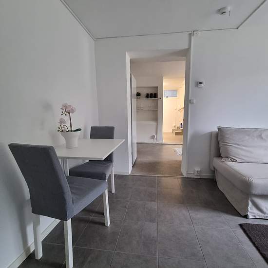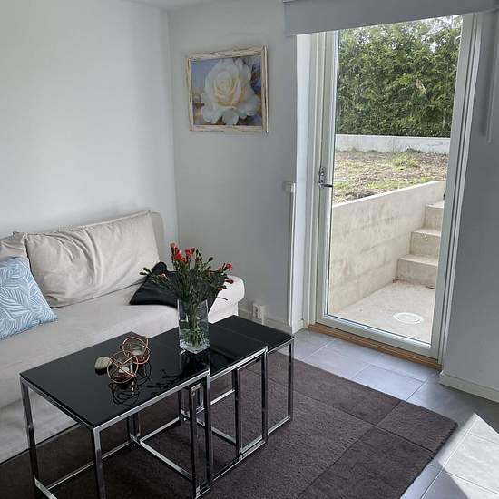 Bostaden är en källar/sutteräng lägenhet i vår villa. Ingång till lägenheten är på vänstra sidan av huset. Vi har entrén på motsatt sida. Yale doorman lås med tillgång till att låsa/låsa upp via app. Vi totalrenoverade hela källaren för ca 3 år sedan, sänkte golvet och la in golvvärme i hela källaren drog in FTX ventilation, byggde ett kök och ett stort badrum. Golven är delvis klinker och delvis slipad betong som har en varm och skön känsla när golvvärmen är igång. Lägenheten har en egen uteplats. OBS! Uteplatsen har nu plattor och lit...