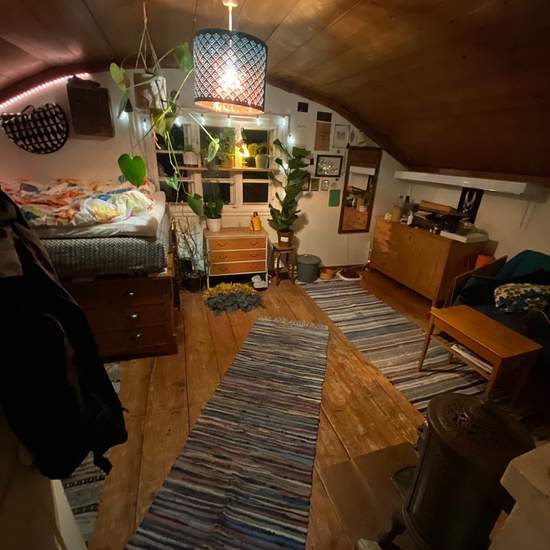 Rum ledigt i mysig kollektivgård på landet! Eget rum samt delat tvåvåningshus med 3 andra personer (3 personer i huset, 1 i tiny house), tillgång till stor tomt med trädgård, odling, bäckar, naturtomt på 3 hektar, tillgång till lada med verkstad samt stall och utrymme för rescue-djur. Rummet kan hyras delvis möblerat eller omöblerat. Fantastiskt sommarparadis med närhet till många badsjöar. På vintern täcker snön ofta landskapet. Alla sovrum samt vardagsrummet och kök har kaminer/eldstad. Det bor hönor, minigrisar och katter på gården. Hemm...