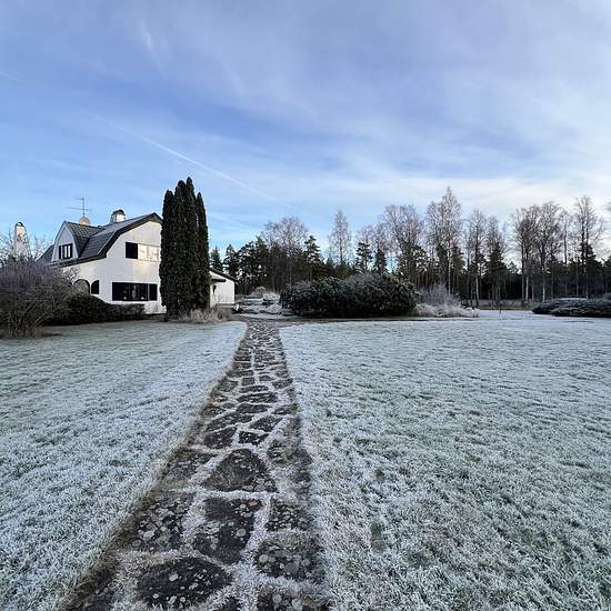 Eget hus med tennisplan, inomhuspool, bastu samt stor trädgård/gräsmatta. Fastigheten är omgiven av skog och grönområden. Nära Räggårdsviken – en populär badplats sommartid med fina klippor och vacker natur. Huset uthyres omöblerat. Nuvarande hyresgäst har endast delvis flyttat ut på bilderna. Det finns två ”riktiga” sovrum, men goda möjligheter att placera ytterligare två sängar på övre plan. Familj bestående av fem eller färre är optimalt. Tidigare hyresgäst var en familj på fem. Bil är ett måste då huset ligger en bit från kommunala t...