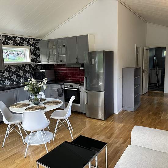 Trevligt hus i Gävle! Möblerad, 2rok Ett sovrum, öppen planlösning kök/vardagsrum med bäddsoffa, badrum och tvättstuga. Bekvämligheter såsom smart-tv, cromecast och wifi ingår också. Plats för 3 gäster med uthuset. (Dubbelsäng, enkelsäng, bäddsoffa). På gården finns plats för två bilar. Serviceavgift för hyresgäst: 792