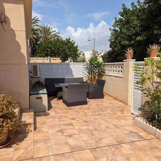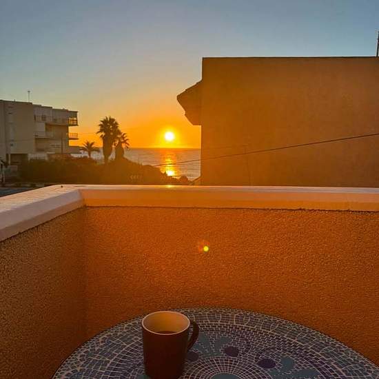 Tänk dig din morgonkopp med kaffe här? Sen 50 m till havet och en ”egen” liten strand samt klippbad med fin snorkling! Barnvänligt men även perfekt för paret! Ett radhus med 60kvm terrass, takterrass, 2 sovrum och två toaletter varav en med dusch. Havsutsikt såklart samt direktaccess till den lilla föreningens pool. 900m till playa Los Locos och 2 km till La Mata. Kök och vardagsrum hänger ihop och precis utanför dörren finns en liten inglasad terrass innan du kommer ut på den stora terrassen med gott om plats för både matbord och soffgrupp....