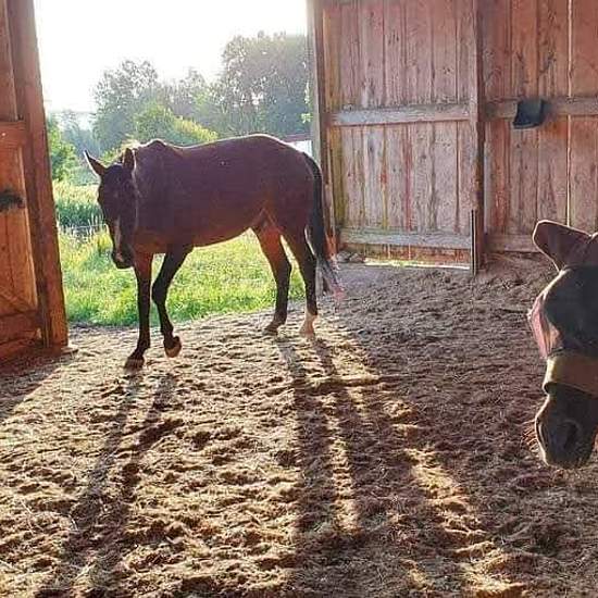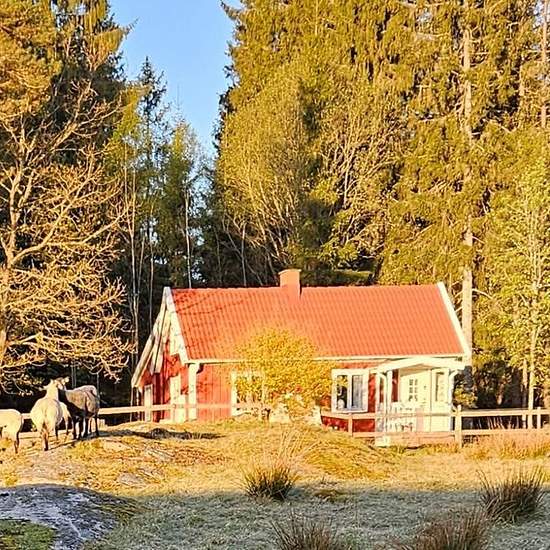 Hus på hästgård i Mollaryd 2,5 mil norr om Borås uthyres. 2 rok ca 55 kvm plus två loftrum. Inflyttning möjlig 1:a november På bottenvåningen finns sovrum, tv-rum, kök, kombinerat bad och tvättrum samt hall med förråd. På övervåningen finns två loftrum som man kan ha som sovrum men där är lågt i tak. Stugan ligger lite för sig självt med egen tomt ca 75 m till stallet. Finns även ett litet förråd jämte huset. Vi ser helst att du /ni har häst här och det finns möjlighet att ha flera hästar med egen del av stallet samt att det finns både boxa...