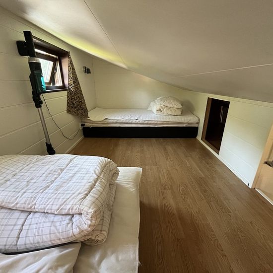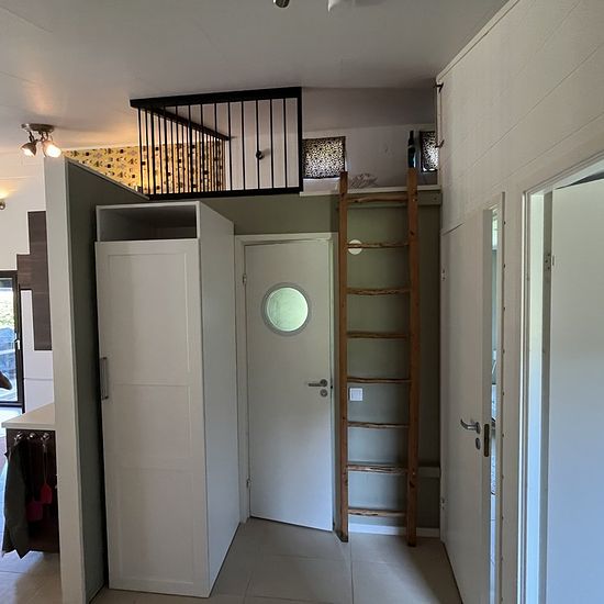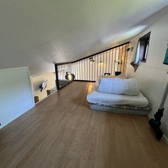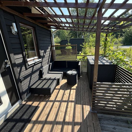 Här finns möjlighet att hyra ett charmigt hus med två sovrum med våningssängar och ett sovloft med plats för 3st. Upp till loftet finns en lodrät stege på väggen där barnen älskar att sova och hänga. Det finns en inglasad altan på 25m2 och även uteplats i kvällssolen. Tvättstuga delas med två andra stugor och ligger i sidobyggnad. Möjlighet att boka vedeldad bastustuga finns också. Meddela intresse vid förfrågan, då bastu delas med 2st andra stugor. Stugan ligger som sista hus nära skog o natur i ett mkt lugnt område med rikt fågelliv. Det ä...