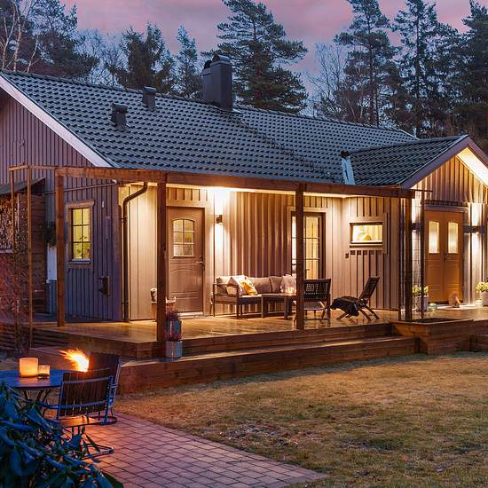 This energy-efficient villa offers a bright, welcoming atmosphere with large windows and a gabled roof. The well-planned layout includes a spacious renovated kitchen connected to a cozy living room with a central fireplace, leading to a spacious glazed conservatory for year-round use. It features two bedrooms, including a master with a walk-in closet, a spare bedroom, and a luxurious newly renovated bathroom. A practical, the renovated laundry room with its own entrance and the heated double garage can be used as a workshop and storage. Enjo...