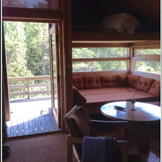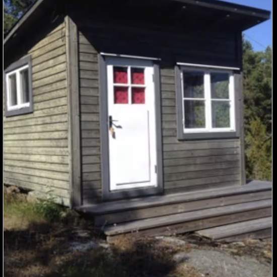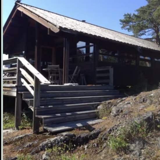 Ljus stuga med underbar havsutsikt och sol både morgon och kväll på terassen. Öppen planlösning mellan kök och vardagsrum med platsbyggda soffor. Två sovrum: ett med dubbelsäng och ett med våningssäng. Det finns också ett sovloft och en alkov i det öppna vardagsrummet där man kan sova. Totalt 8-10 möjliga sovplatser. Kök med rinnande vatten, spis och ugn. (Ingen diskmaskin eller tvättmaskin finns). Badrum med förbränningstoalett, duschkabin och en liten bastu. Cirka 50 meter från storstugan finns en gäststuga på cirka 15 kvm med två sängar s...
