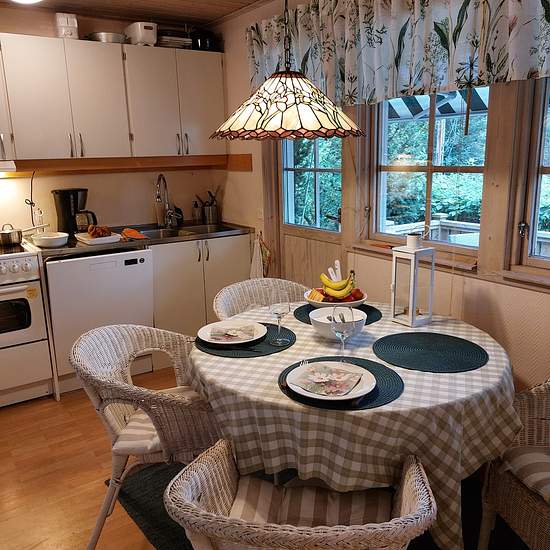 Trivsamt litet hus I pittoreska Stavsnäs by med fin utsikt över viken. Uthyres möblerat. Öppen planlösning mellan fullt utrustad köksdel och soffhörna med braskamin Två sovrum-tre bäddar. Fina strövområden. Bageriet runt hörnet. ICA på prommenadavstånd. C:a 50 min med buss till Slussen. Lämpligt för 1-2 personer Mindre hund kan diskuteras. Serviceavgift för hyresgäst: 565