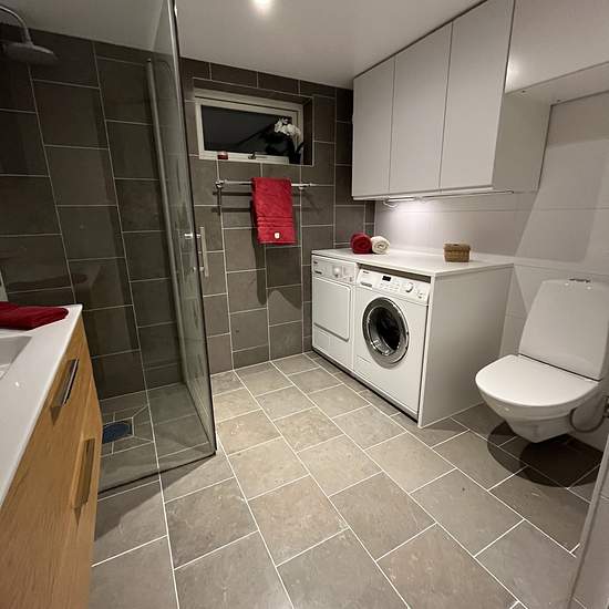 Hej, Vi hyr ut ett komplementbostadshus med bastu (ca 75m2) centralt i Täby, superbra kommunikation till stan med Roslagsbanan och bussar utanför dörren även nattbuss från Stockholm city. Universitetet och Tekniska högskolan nås på 15-20 min från bostaden. Cykelvägar till city finns direkt utanför huset. Att gå till Roslagsbanan tar endast 3 min (Ensta stn) eller 10min (TäbyC och Galoppfältet). I TäbyC finns förutom ett av Sveriges största köpcentrum också busstation med bussar som tar dig i alla riktningar. Bara 6 minuter med cykel till Rön...