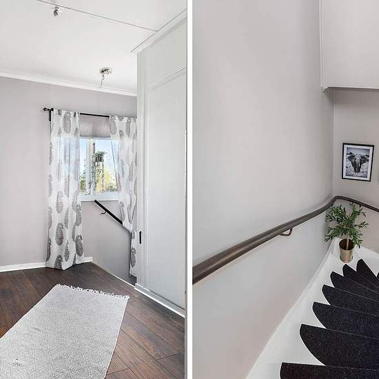 Välplanerat, ljust radhus i två plan i avgränsat område. Halv källare med bra förvaringsmöjligheter. Nära till natur, skog och vandringsled. Från köksfönstret syns den nybyggda lekplatsen. Vitvaror sedan 2020. Vitmålade plankgolv i sovrummen., vitmålad trappa. I övrigt klickgolv. Nytt badkar från 2020. Det tar knappt 15 minuter med bil till centrala Karlstad. Busshållplats i närheten. Hyran är kallhyra, hyresgästen tecknar eget el- och internetavtal. Vatten och avlopp ingår. Serviceavgift för hyresgäst: 356
