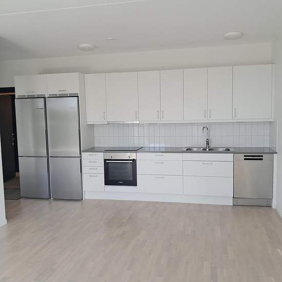 Köken är välutrustade med vita eleganta luckor från HTH. På golvet ligger en vacker ekparkett. Väggar, tak och lister ar vitmålade. Badrummen ar helkaklade med stora vita blanka plattor på väggarna och beige klinker på golvet. De är även utrustade med duschvägg i glas, spegelskåp med belysning, kromad handdukstork samt krokar. Badrummen ar också förberedda för tvättmaskin och torktumlare. Fastigheten ar rökfri och har en stor grön innergård med gemensam odling, sittyta med pergola Bara några minuters promenad bort ligger Rågsveds tunnelbanes...