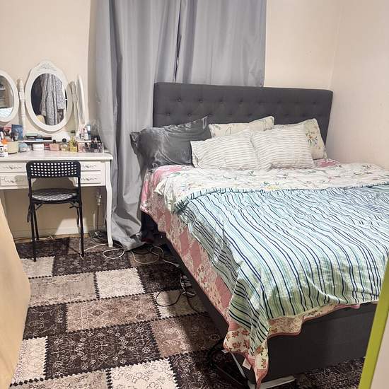 En ljus och trevlig 3 rumslägenhet. Där ingår värme och hushållsel samt internet och Tv för närvarande. Nuvarande hyresgäst har lagt heltäckningsmattor över parkett golvet. golvvärme i badrummet med egen tvätt och tork. Serviceavgift för hyresgäst: 528