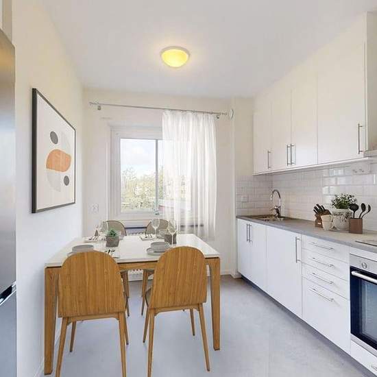 Välkommen till denna ljusa och trivsamma trerumsvåning i Bromölla. Här bor du bekvämt på tredje våningen med en hemtrevlig atmosfär och moderna inslag. Bostaden bjuder på en genomgående uppfräschning med ljusa ytskikt som bidrar till en känsla av rymd och lugn genom hela lägenheten. Det här är ett hem att verkligen trivas i. Bostaden presenterar en öppen och smart planlösning som utnyttjar varje kvadratmeter väl. Köket är stilrent med vita skåpluckor, vitt kakel och en praktisk arbetsbänk, komplett med en modern kyl och frys. I anslutning t...